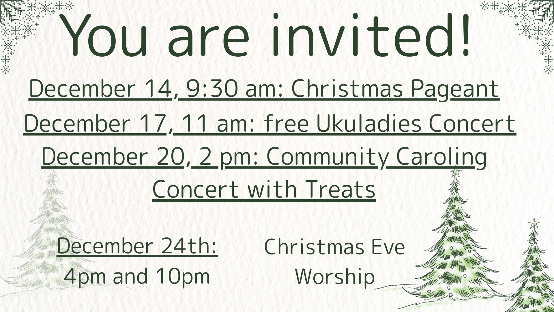 You are invited to join us here in person, or online by clicking HERE to visit our YouTube Channel.