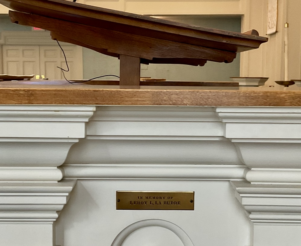In 1950 the Labudde family donated the pulpit and alter vestments for the present church. Leroy’s name can be found on a memorial plaque on the Pulpit.